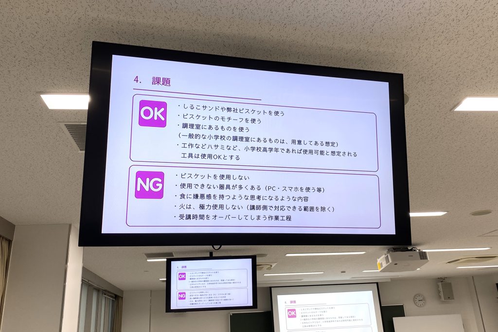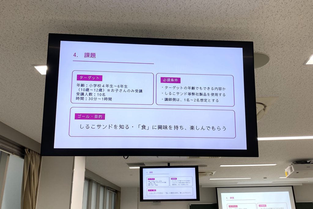 今回発表された課題は、『しるこサンドを知る・「食」に興味を持ち、楽しんでもらうことを目的とした講座』を考案すること。