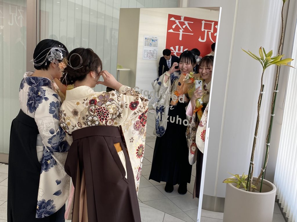 天候にも恵まれた当日。晴れやかな空気の中、会場には華やかな装いの卒業生が集まりました。