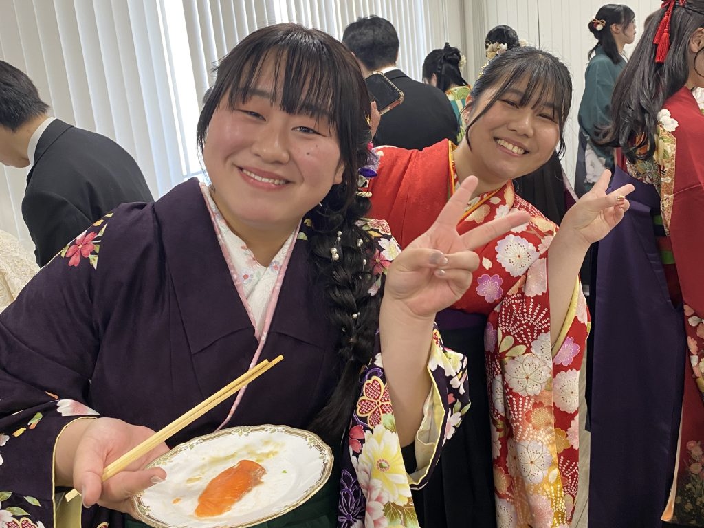 式典後には「卒業生を祝う会」を開催。4年間ともに過ごした仲間とともに立食パーティーを楽しみました。
